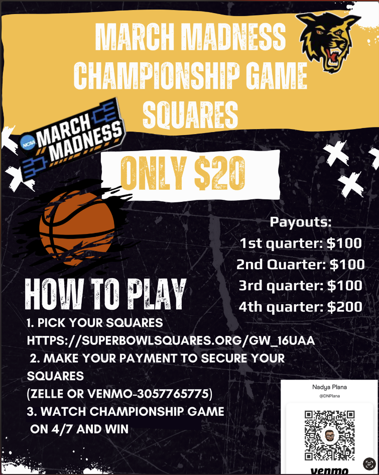 Since this is a Fund Raiser, $1,500 of the proceeds will go to the Golden Wolves, and the other $500 will be distributed among the Users with a Winning Square.
